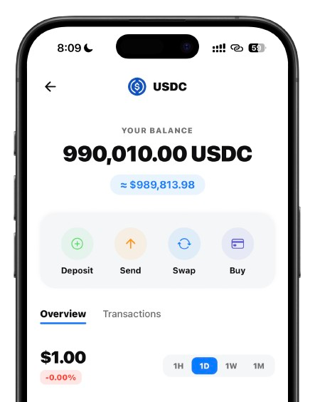 Instantly purchase Bitcoin and top cryptocurrencies via MoonPay integration and hold your balance in stable USD-backed assets for global stability.